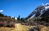 梅里东线之云岭山径,无边的秋色与圣洁的雪山同辉,疲惫的驴子与好奇的牦牛同行