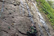 生态农庄内吃喝玩乐的设施比较齐全,这里的攀岩场属于自然岩壁,上面打了些锚点,难度不大。