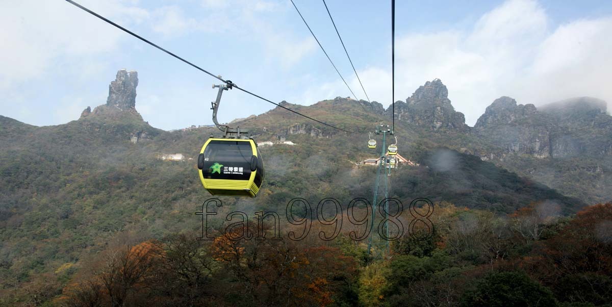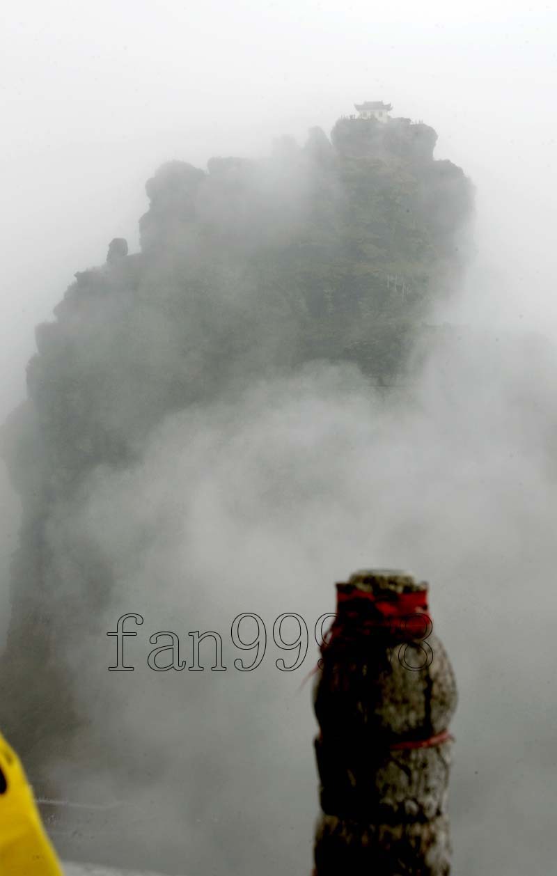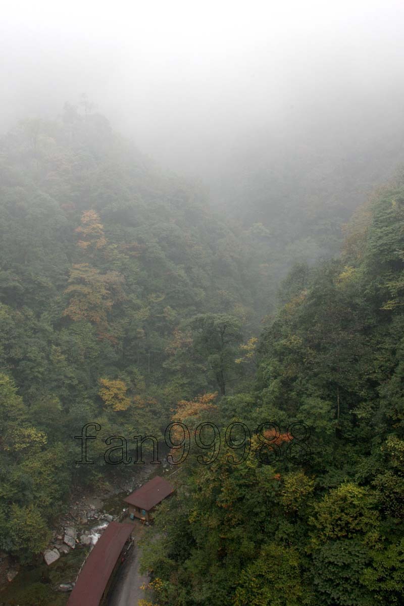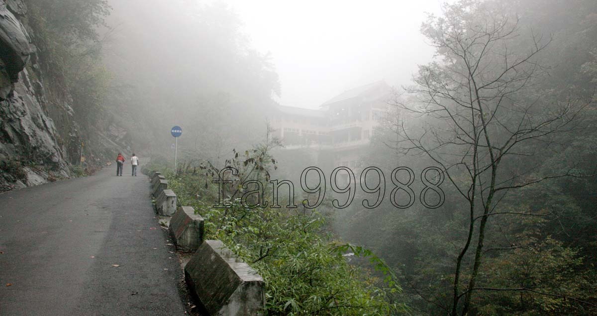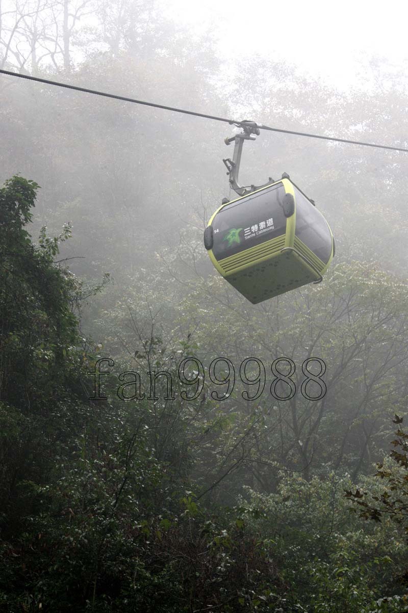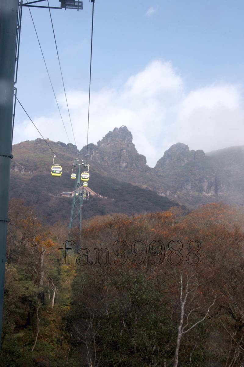 我們一行四人四日晚上到達梵淨山景區,在那旅社住了一晚,第二凌晨五點進入景區,步行將近三小時到達纜車下行點。進入景區后,霧氣很大,快到達纜車下行點,霧已經變成了雨。考慮到天氣變壞,上山那段路雨中不安全,還是坐的纜車上山。