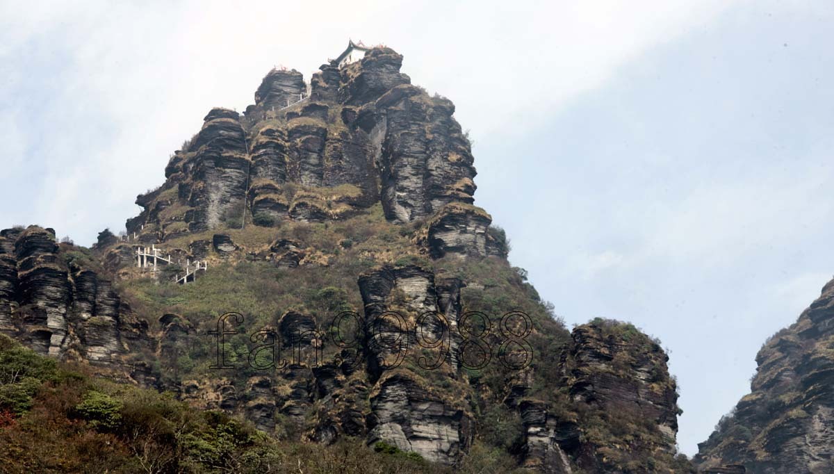 從蘑菇岩上看梵淨山廟宇全貌