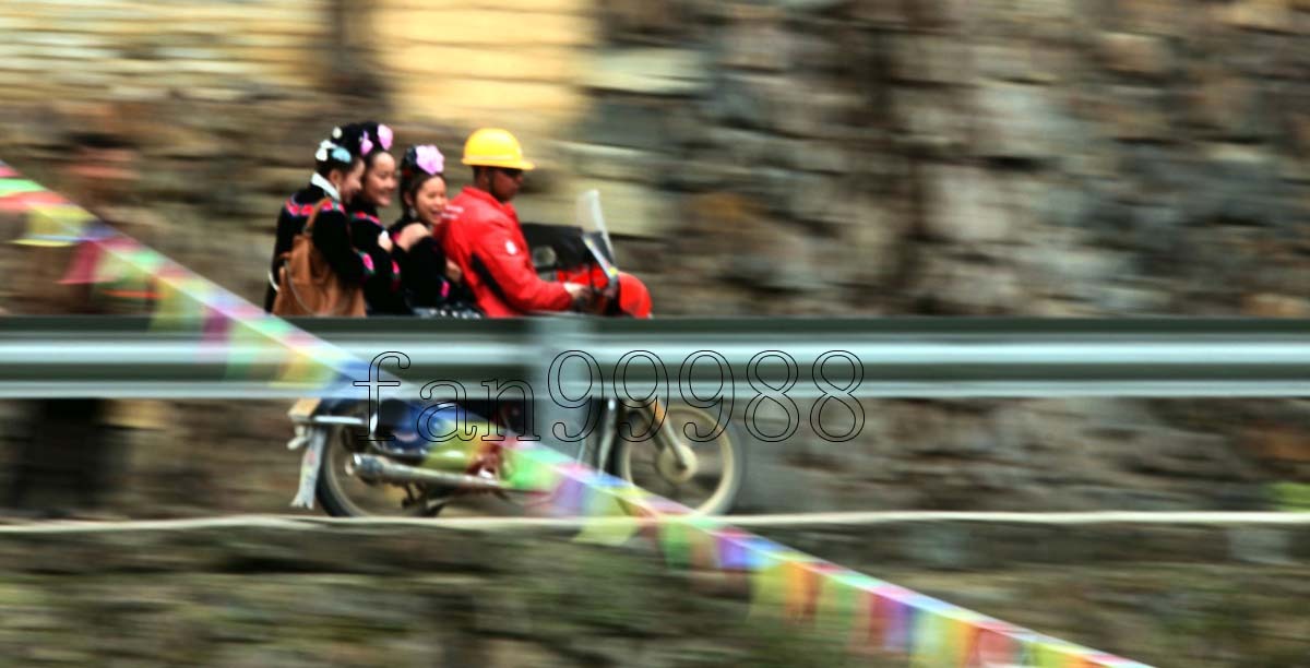 摩托車是這裡主要交通工具,這一車MM也是去看斗牛、跳蘆笙的