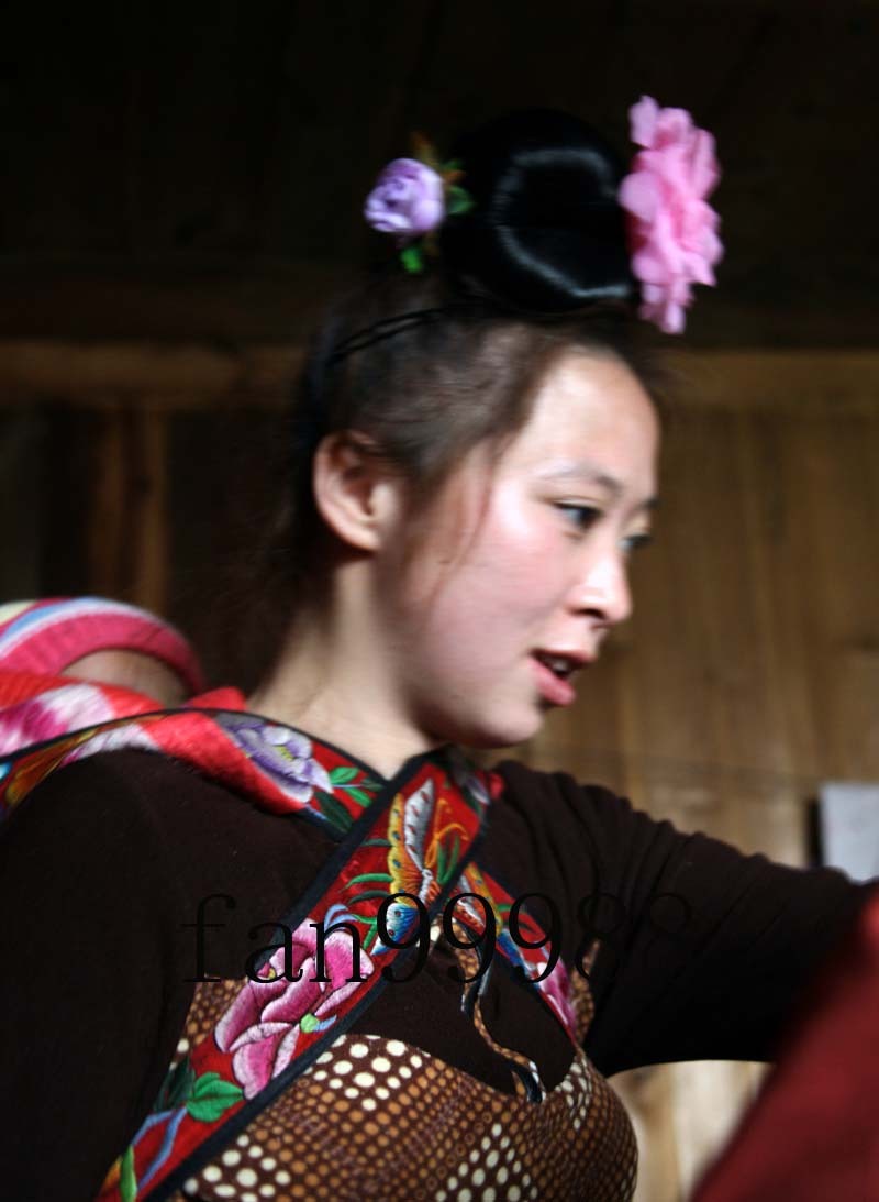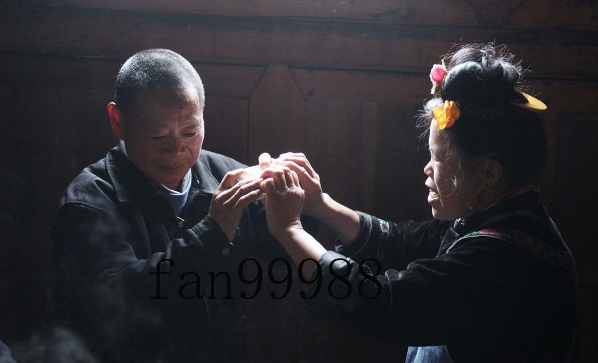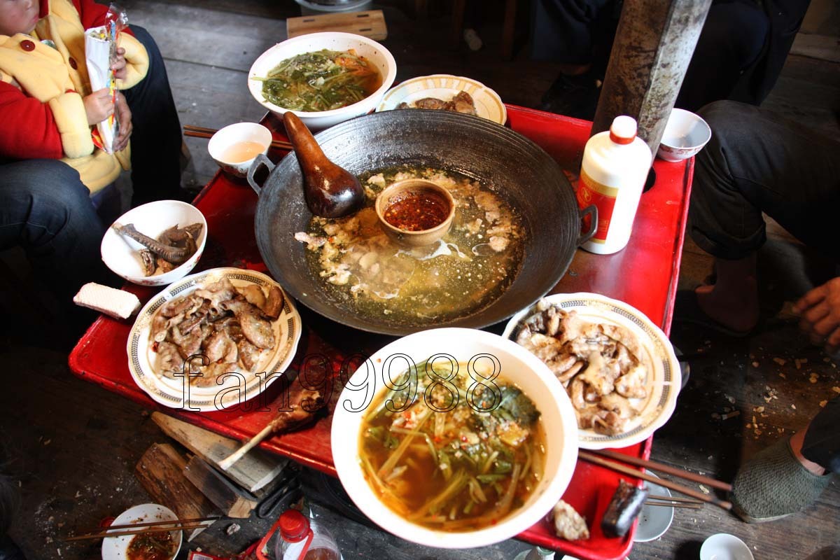 從西江千戶苗寨出來,一路也沒有見到飯店,三人早餐都沒有吃,羊吾村也沒有見到飯店。我們在路旁隨便問了一家有否飯店的,主人就熱情地將我們請了進去,告訴我們這村沒有飯店,讓我們參加她們鼓藏節,一起喝酒。這裡一家來了親戚正在喝酒,圍坐在火爐喝酒吃肉。
