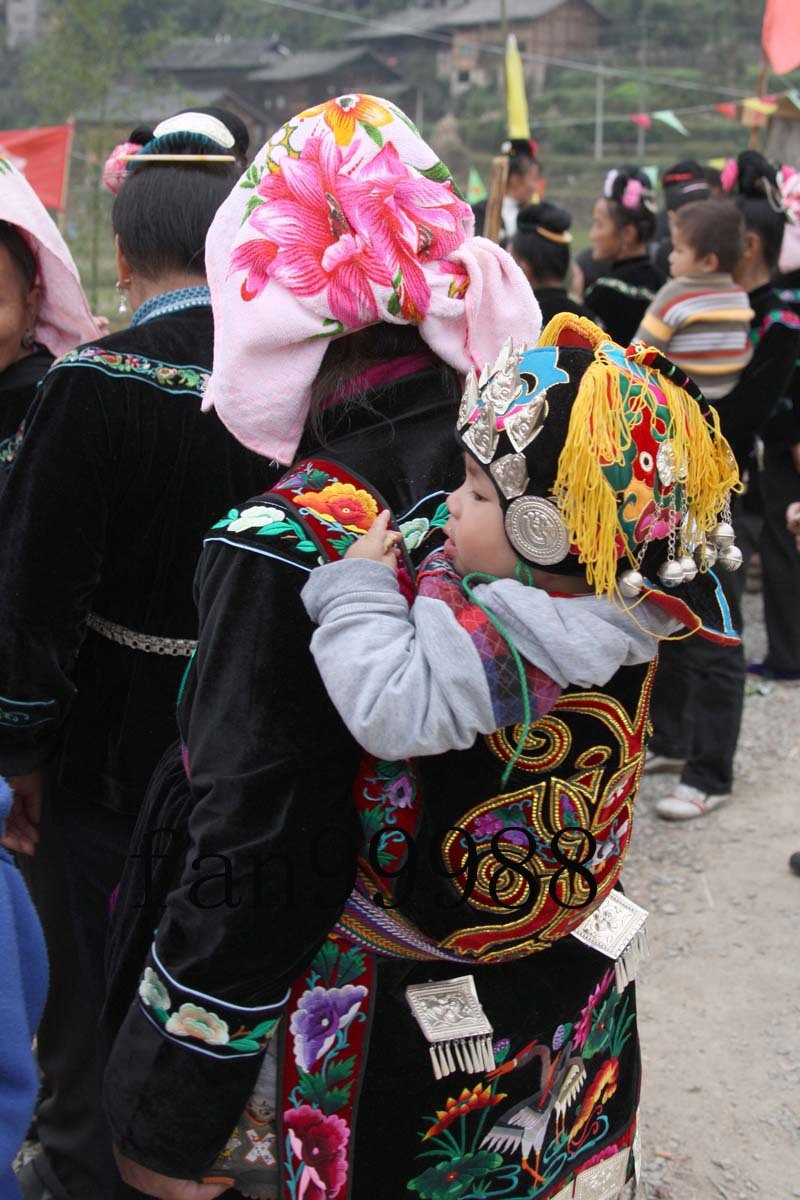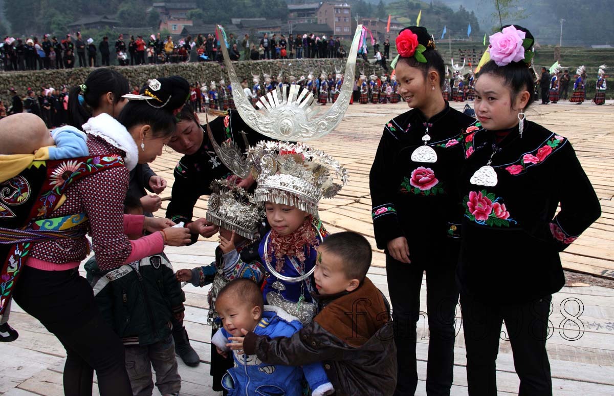 节日期间,貴州雷山縣丹江鎮陶堯村活动有宰猪祭祖仪式、牛王擂台争霸赛、苗族银饰刺绣盛装、独特的民族歌舞展演、苗族歌舞庆典仪式等。斗牛場上的男人、跳蘆笙舞的穿金戴銀的美少女、放鞭炮的兒童、還有背著孩子的小媳婦湊熱鬧。。。處處洋溢著歡樂的歌聲、笑聲。