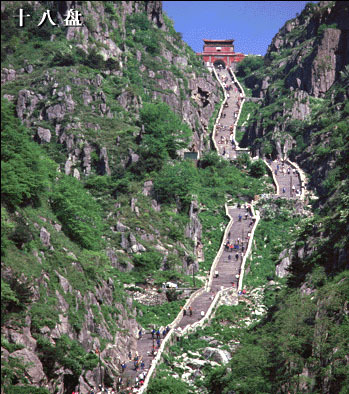 紧不慢又十八”,又至南天门为“紧十八”,共计1630余阶。“紧十八”西崖有巨岩悬空, 侧影似佛头侧枕,高鼻秃顶,慈颜微笑,名迎客佛。 十八盘岩层陡立,倾角70至80度。泰山十八盘是泰山登山盘路中最险要的一段,共有石阶1600余级,为泰山的主要标志之一。此处两山崖壁如削,陡峭的盘路镶嵌其中,远远望去,恰似天门云梯。【活动地点】:山东泰安