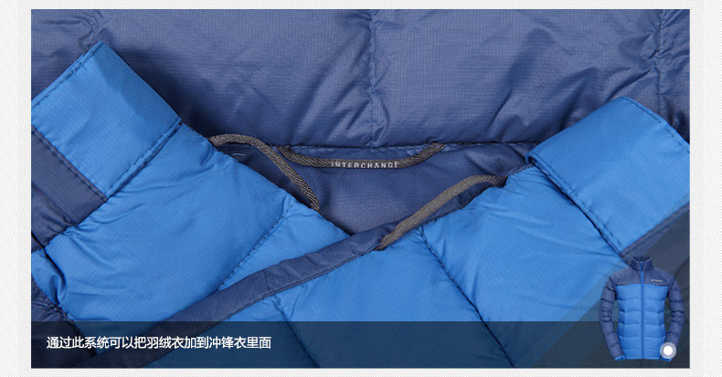 衣服里面下摆处有防风裙摆设计,防止风从下面倒灌,防风裙上有暗扣,如果加抓绒衣,可以固定下摆