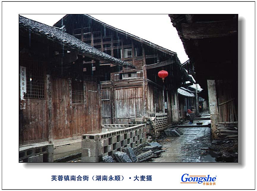 “我想那要看时间、场合和自己的身份”,我们穿过一条窄街我们来到了大名鼎鼎的芙蓉镇石板街,小何说电影《芙蓉镇》就是在这里拍的,我看了看门牌,上面写着“南合街”。我一边继续着聊天,说自己只能提供些大致的原则,我个人认为外在的美有两种表现形式,协调和对比。“协调”是指整体装扮呵、面料做工呵、饰品选择呵、色彩使用呵使整个外型风格一致;“对比”则是通过局部变化形成反差,塑造自己与众不同的独特个性。