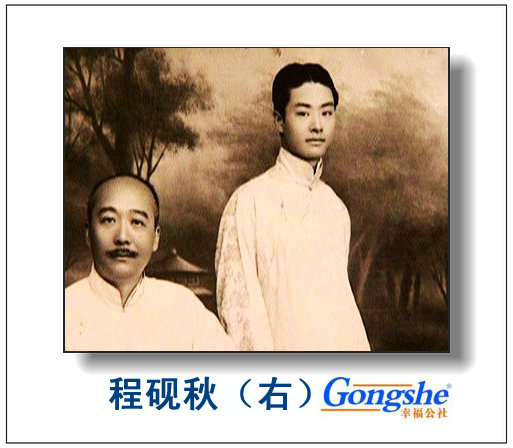程砚秋(1904-1958),满族,原名承麒,乳名小石头,排行为四。艺成后曾与文亮臣、曹二庚、郭仲衡义结金兰,程最小亦行四,故同仁称其程四爷。幼因家贫仅读一年私塾即辍学,6岁时写与名旦荣蝶仙为手把徒弟,立字八年,自此踏上梨园之路。先后从师荣蝶仙、陈彤云、陈啸云、乔蕙兰、九阵风、王瑶卿等诸多名家。15岁移至北芦草园9号,与当时在此居住的梅兰芳为邻。19岁经梅氏夫妇撮合,程砚秋与果素瑛于1923年4月26日于“同兴堂”饭庄举行结婚典礼,是日,程氏夫妇同其母进住前门西河沿23号(今36号)新居。