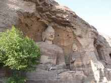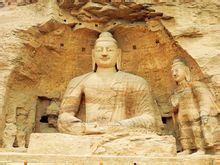 昙曜五窟通称"昙曜五窟。"十六窟为平面呈椭圆形。正中主像释迦像,高13.5米,立于
