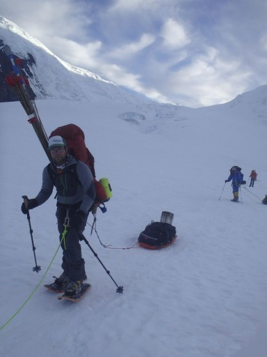户外装备实验室编辑伊恩·尼克尔森在测试背包,并带着一个小组成功登上德纳里峰(注,也称麦金利峰,北美最高峰,在阿拉斯加),照片位置离简易机场3小时,背着一个60磅(27公斤)的背包,拖着一个30磅(14公斤)的雪橇。