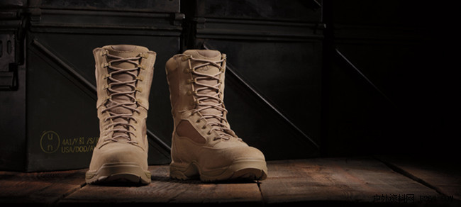 美国国防部订购了大约42万双沙漠靴。沙漠部队战斗用靴,皮面为黄牛反绒皮,靴筒为复合(多层)帆布,透气性能很好。橡胶鞋底具有耐磨、防滑、耐热等优良特性。模压结构。鞋舌采用风箱式防沙设计。适宜野外、沙尘等环境下着装和训练用鞋。由于鞋底原料原因,沾水后防滑性能较差。这也是它的缺点所在。还有着极大的提高空间。