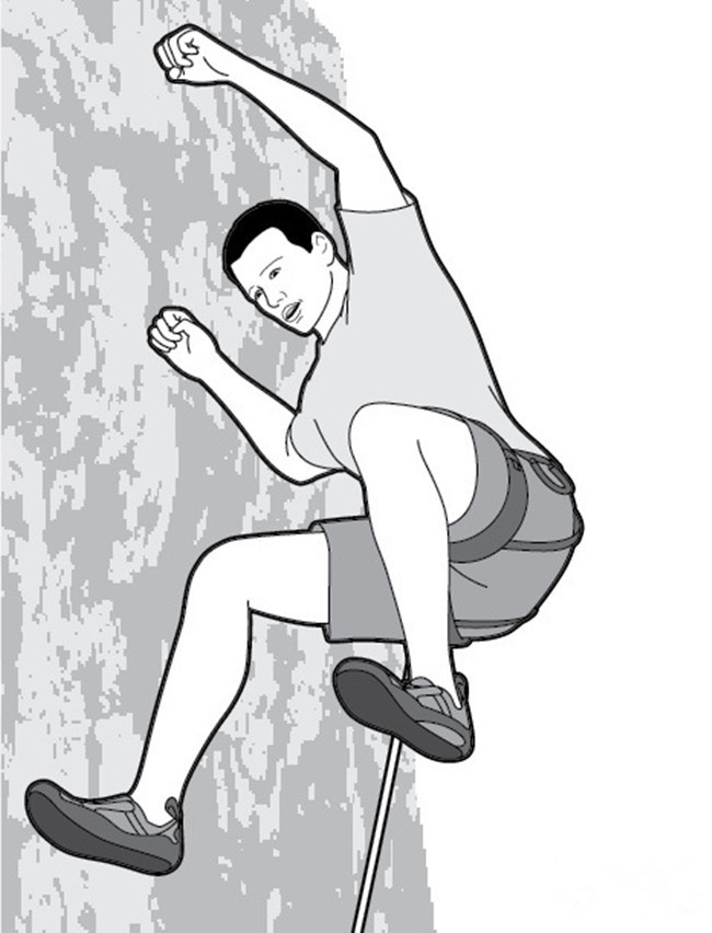选择在垂直的运动攀岩壁上(室内或野外的)或略带仰角的岩壁上练习。