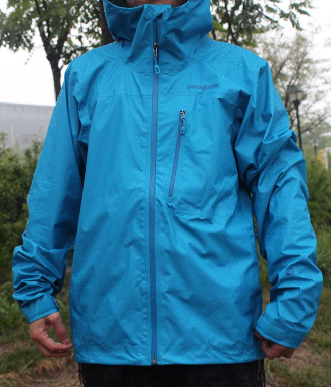 雨天环境下,同样是户外徒步;室外天气稍微显凉,拉紧拉链和风帽,对凉风和细雨丝毫无惧;在雨水洗礼下,衣服起初只是表面有明显的水珠;随着时间的推移,衣服上的积水渐多,但是丝毫没有渗透到衣服内部,H2no的防水效果立竿见影。