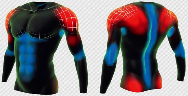 (三)无缝技术,根据人体表面不同排汗区,使用了特别的3D立体工艺编织出不同的功能区,将缝线减少到最低限度,减少与身体的摩擦,显著提升穿着的舒适度。