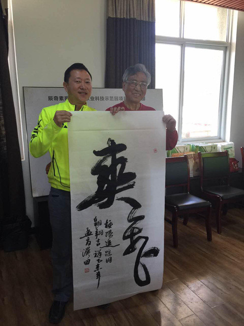 赛事间隙,远景老师还组织陕西省书画协会的书法家和滑翔伞运动员之间进行了书法笔会联谊活动,图为书法家泽田为广大伞友题写的“爽飞”二字!