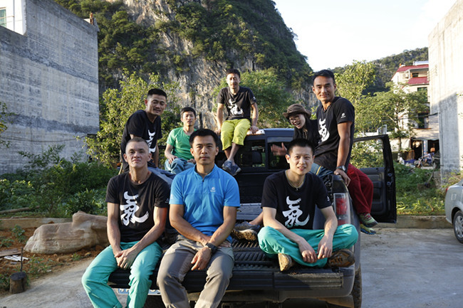 攀岩线路难度不一,适合于不同水平的攀岩者。为了让毫无经验的媒体朋友更好地体会攀岩乐趣,队员们特地开辟了一条难度等级较低的线路。