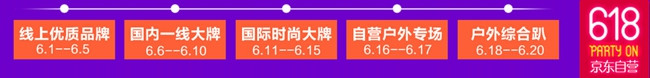 现在,这份协议的效果已经初见端倪。由于今年京东“618”活动是从6月1日开始,持续到6月20日,所有页面已经更新。按照这个时间表,自营户外专场占据了黄金档期。可以看出,京东今年将户外版块的重心放在“自营”二字。