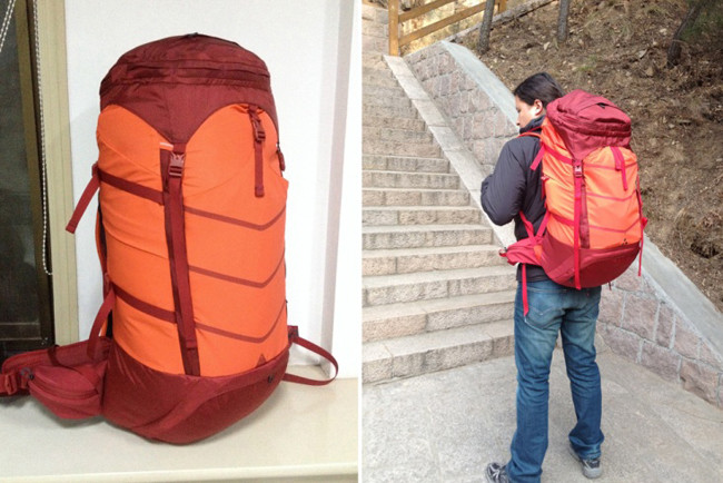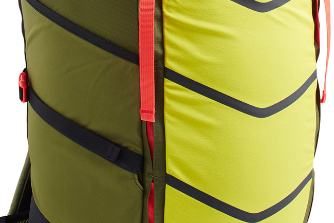 LostCoast(迷失海岸)可拆卸式头包,可在临时情况下作为小型便携包使用。包体采用胸腔式承重设计,在背包重力和惯性拉力的合力方向进行工艺补强。还可以将背包面料遇到极端环境时被撕裂的范围进行有效约束