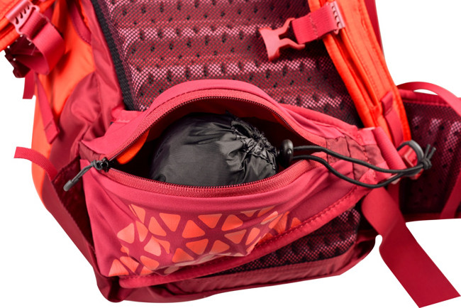 背包背带同背板一样,采用Eva材料,有标志性莲花图案透气孔,通风透气,舒适环保。腰带同样是塑形的Eva海绵,最大限度地体现出背包的人性化设计。隐藏式菊环在包体两侧及背带上都有,使用时可以拉出,这项设计使背包表面整洁美观,却对外挂功能的需求毫不妥协。