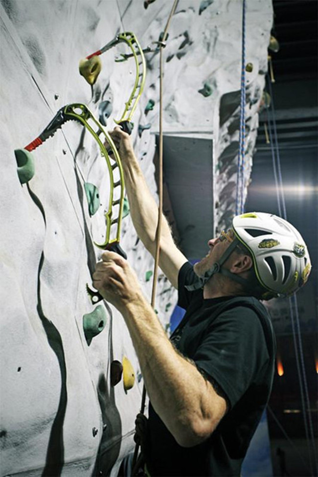 随着攀冰及阿尔卑斯式登山运动对难度和线路的不断突破,使其攀登路线不再是单一的冰雪,岩石冰雪的混合线路进而演化出一种全新的攀登技术“干攀”。作为一种特别的攀登方式,干攀通常指攀登者借助攀冰的装备进行攀岩。干攀主要使用勾挂及平衡技术来进行,这就要求攀登者有极好的力量、平衡感知、控制力、线路读取能力、环境分析能力等。