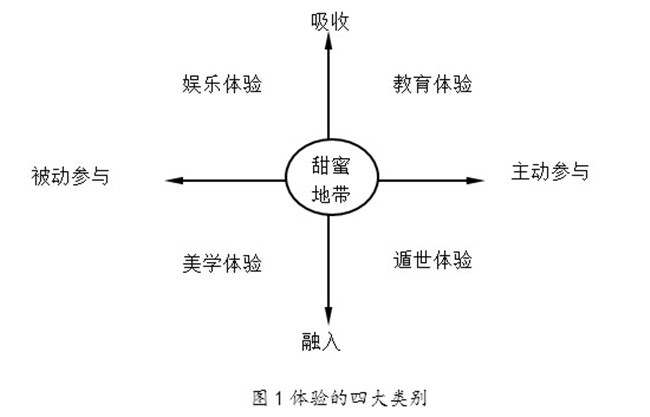 不管是对户外参与者还是对向户外群体提供服务和产品的户外休闲企业而言,户外体验的质量都是人们从事户外及相关活动的生命线。体验是户外运动的本质属性,户外运动是体验经济时代的先锋。Pine和Gilmore认为赢得顾客的方式是在他们中间创造一种体验。他们在《体验经济》书中指出,体验是以服务为舞台,以商品为道具来使消费者融入其中,创造出值得消费者回忆的活动。GilmoreandPine在著作中提到“体验土国”包括四大要素——娱乐,教育,逃逸和审美。