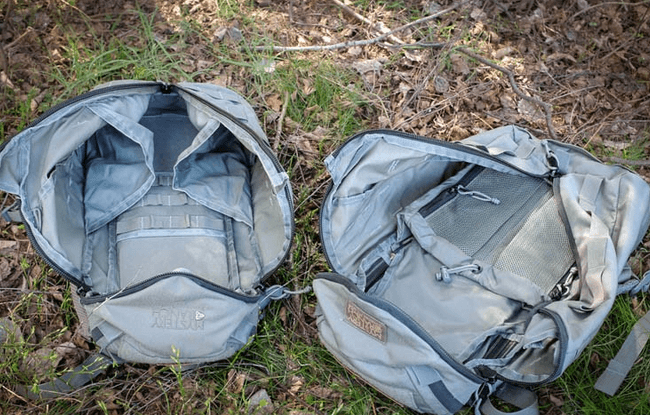 从上图你可以注意到两者背负背带的长短差异。同时也可以看到两者在腰部设计也有些许不同。右边的1DAP更符合人体工程学,它把腰部背垫分割为两块,能更好地贴合你的背部。ASAP它是一款为战斗设计的背包,没必要把设计搞的太复杂。