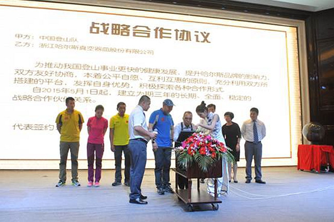 日前,哈尔斯与国家登山队举行签约仪式,这是双方首次达成战略合作关系,双方将在推动我国登山事业更快健康发展、提升哈尔斯品牌影响力等方面展开多方合作,同时哈尔斯将负责设计、研发制造国家登山队系列指定水杯并向市场推广。