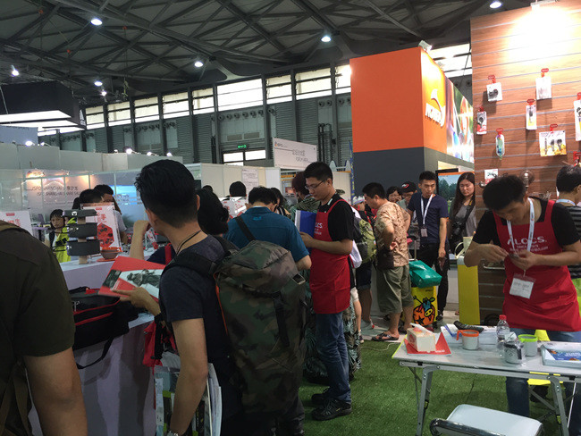 N1馆内容主要是户外露营/旅游、水上运动、极限运动相关品牌(俱乐部),背包类这次比较抢眼的是那个有着炫酷名字的“北风之神”——Boreas,这次位置不错,主通道上,好像还搞了一个小活动,展位一直很热闹,产品本身设计也是很吸引人的。此外Chums、Osprey、Deuter、Eagle Creek、Timbuk2,Pacsafe这些背包品牌也都来了,不过整体感觉旅行类背包多些,技术类品牌颇少,炉炊具类展区那爱路客的三分钟牛排锅活动一直是人头攒动,人气很旺,飘香的牛排令吃货们难以自已啊;韩国的炊具品牌Kovea展位面积也不小,前些天这个品牌刚在北京开了一家很大的品牌旗舰店,正式吹起了开拓中国市场的“号角”,其他品牌还有很多,就不一一列举了。