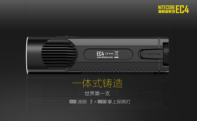 EC4手电筒是奈特科尔使用铝合金一体式铸造这种目前业界来说最新的技术制作的手电筒,是针对专业户外用户而设计的。这种技术将融化的铝合金在高压高速下注入模具,并在高压下凝固形成铸件。这种技术因为能制造出更轻、更坚固的部件,所以近年被豪华汽车、航空航天等一些工业所使用。一体式铸造技术与传统的CNC数控机床加工技术不同,既可以将手电筒制作成非圆柱形,也避免了CNC刨削产生的废弃材料。
