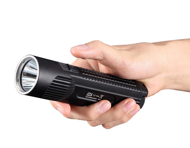 这种超前的技术为EC4带来的好处也是传统三段式手电所不能相比的,除了坚固程度是传统手电的两倍,以及更加紧凑的内部结构,它的散热设计也是目前来说几乎完美的,一体式的筒身使LED在工作时产生的热量,能够迅速均匀地分散到整个手电筒的表面,而垂直设计的散热鳍则确保了EC4拥有更大的散热面积,让EC4能在高亮度下长时间工作而且不会过热。筒身微暖,但绝不烫手,握持起来十分舒适。