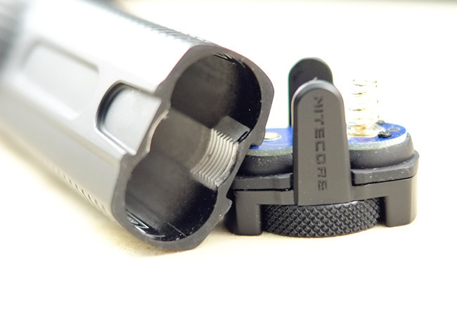 尾部旋钮式设计非常牢固单手操作没有压力,另外宽厚的防水胶圈醒目可见使得ec4的整体造型十分完整。
