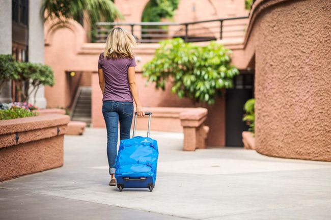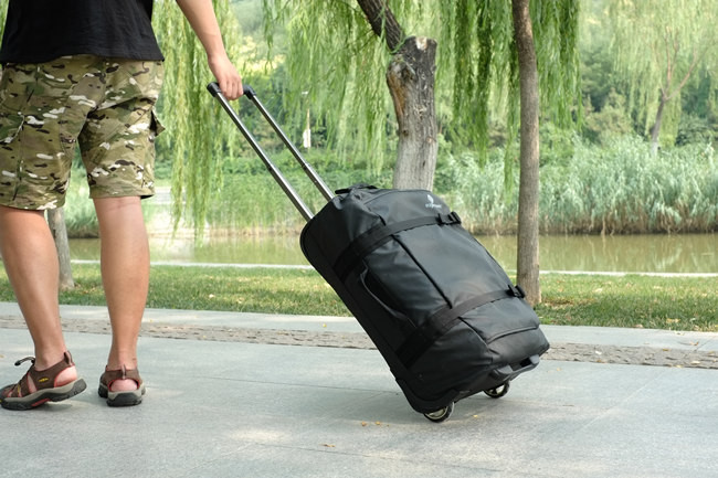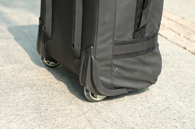 大大的轮子和不错的间距,在行走的过程当中不会“拖后腿”。整个过程轻快顺滑,作为一个拉杆箱Eagle Creek FlatbedTM Duffel在“拉”的方面你完全不用担心。由于轮子很大所以“离地间隙”可以保证在过一些小点沟坎,比如走盲道的时候不会磕碰到箱子。