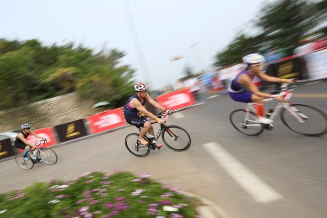 40公里的骑行路,虽然很艰辛,但一路有那么多人对选手们竖着大拇指,36度的高温,很多年轻的志愿服务者都顾不上喝水,一直在挥舞着手里的旗帜为一个个选手指明前进的道路,小编虽然也是第一次卧底铁三赛事,艰难骑行的过程中虽然很累,但心里却无比的满足,可以不用担心有没有车,会不会撞到行人,可以不用找路,甚至能任性的低头疯骑,只有在这样一场赛事中才能享受如此的待遇!在很多个岔路口,当地的警察封掉整条道路为选手把握着安全,堵在路上的司机也没有人埋怨,反而都凑到路边为选手加油,这样的保障让小编充分享受着整个骑行的过程,恩,足足享受了两个小时,要不是骑行线路快关门了,才不去换项区……