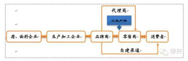 体育用品户外用品零售行业处于户外用品产业链的下游,上游行业是户外用品供应商,下游则是户外用品的最终消费者。国内同行业的上市公司探路者为自建渠道的品牌商,而三夫户外属于渠道商,两者的对比如下: