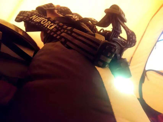 慕峰攀登的难度更多的体现在对登山者体力以及意志的考验,因其线路之漫长,以及随之而来的痛苦和郁闷,是每一位来此登山的爱好者都必须面对的。在攀登过程中,通常设置四个营地:大本营(BC,4300米),一号营地(C1,5500米),二号营地(C2,6300米),三号营地(C3,6800米)。紫笛依扬背着滑雪板子,一步一步向上爬升,从4300BC到5500C1,再踩着雪板一路AT走Z字爬到了海拔6300米的慕峰C2营地。终于在经历了十天的辛苦攀登滑行后,紫笛终于于7月12日登顶山慕士塔格峰。