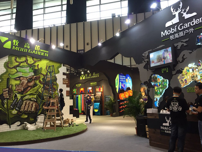 为了充满悬念的最新产品,牧高笛在此次展会的互动活动上更是下足了心思。时下大热的撕名牌游戏也被搬到了展会现场,广大参展观众可以来一场疯狂的“奔跑吧!牧高笛”。同时,牧高笛还在首日邀请涂鸦师,现场涂鸦绘制墙面与帐篷,让现场观众可以亲身体验涂鸦乐趣!