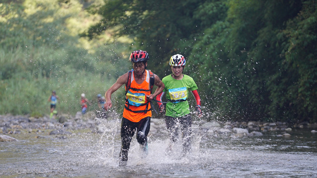 本次比赛共设扎筏泅渡赛和团队溯溪赛两个项目,扎筏泅渡赛要求参赛队伍用组委会提供的竹竿和绳索装成竹筏,然后在水面划行完成规定路线1200米的过程。溯溪赛要求全体队员完成近31公里,海拔上升1000米的溯溪线路,期间运动员跋山涉水相互协作,经过水中越野、绳索攀登和徒手攀岩等集技巧和体能双重的考验。经过两天激烈的角逐,扎筏泅渡赛的前三名分别被哥伦布、遵义医学院和遵义师范学院代表队获得,溯溪团队赛的第一名属于遵义医学院,他们完成比赛的时间是2小时55分,陕西东方队和温州跑者体育文化有限公司分享了二、三名。