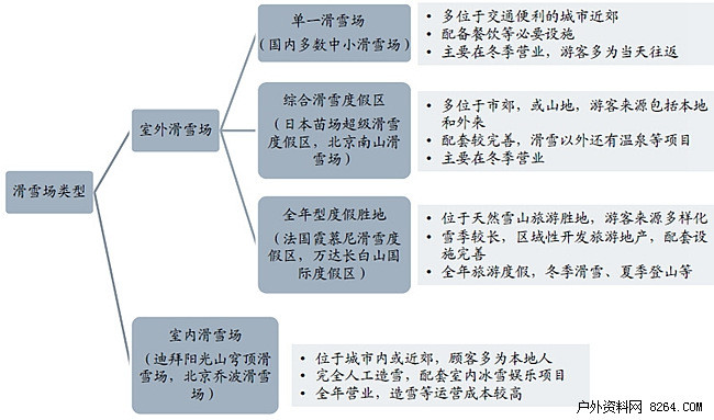 目前,全球共有约6000个滑雪场,其中,美国有840个,日本有滑雪场 827个,中国则拥有437个滑雪场,其中350个为小型滑雪场,占80%。中国滑雪场主要依托东北山地资源而建立, 集中在东三省。北京、河北,甚至长三角等地的市郊区域也有一批以服务当地游客为主的中小型滑雪场,但高水准的滑雪场屈指可数。
