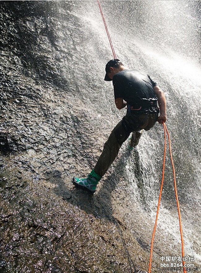 防滑性。防滑性是溯溪鞋最重要的指标。溯溪所要经过的多是峡谷中的水道,水道中会有形态各异的石头,在不同的季节它们可能露出水面,也可能隐于水底,或干而稳定,或布满苔藓,湿滑难立,这就要求溯溪鞋要有很强的防滑性,特别是在潮湿后依然能起到良好的止滑效果。