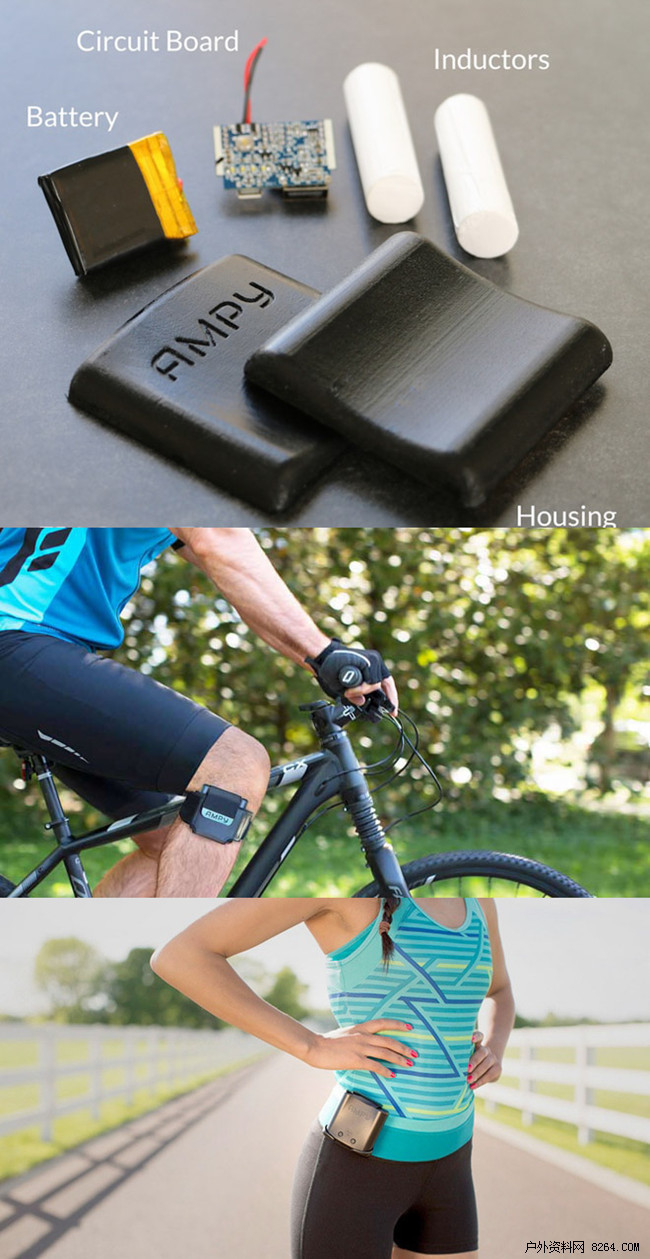 AMPY MOVE最大的功能在于可以将运动中产生的动能转化成电能存储在锂电池当中,在AMPY MOVE内部有两根圆柱形的电感器,电感器与电路板相连,运动中产生的动能通过这两根电感器接收,再被转移至电路板中,经过电路板的转化最后储存到锂电池中。