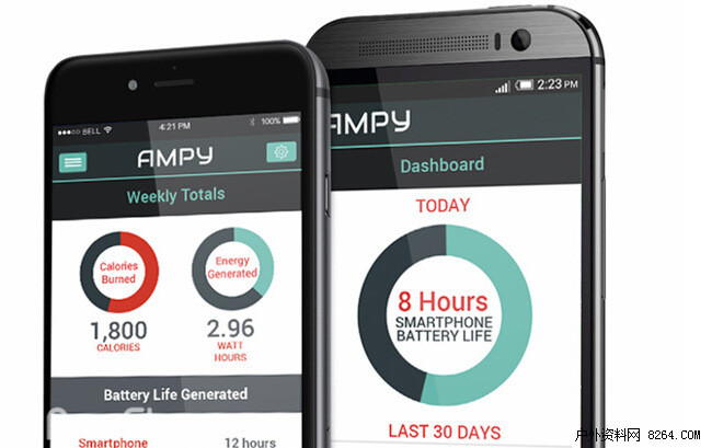 除了作为移动电源之外,AMPY MOVE内置了活动传感器,因此也就具有了运动数据追踪器的功能,这其实就是我们佩戴的智能手环的功能,通过AMPY MOVE专用的应用程序AMPY+可以查看每天运动的相关数据,诸如卡路里的消耗、运动的距离、产生的能量以及减少的碳排放等等。