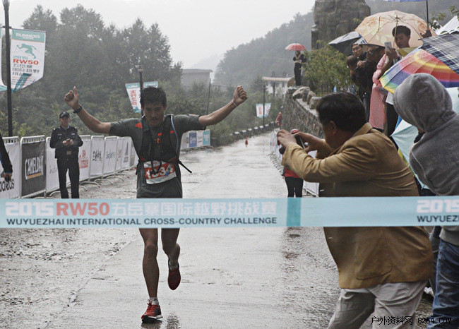 细雨如织,太行决战。9月4日,由河北体育局和体坛传媒集团联合主办、中共灵寿县委、灵寿县人民政府承办的2015RW50五岳寨国际越野挑战赛,在河北省灵寿县五岳寨风景区鸣枪开跑。经过5个多小时的激烈争夺,阿迪达斯菁英跑团成员李少壮雨中冲线以5小时16分36秒获得男子组冠军,同属阿迪达斯菁英跑团樊凤娟以6小时15分44秒夺得女子组冠军。赛后,第一个冲过终点线的李少壮表示:“下雨让赛道难度大了很多,但是今天这一路跑过来,感觉比晴天没什么难度的时候更爽!”