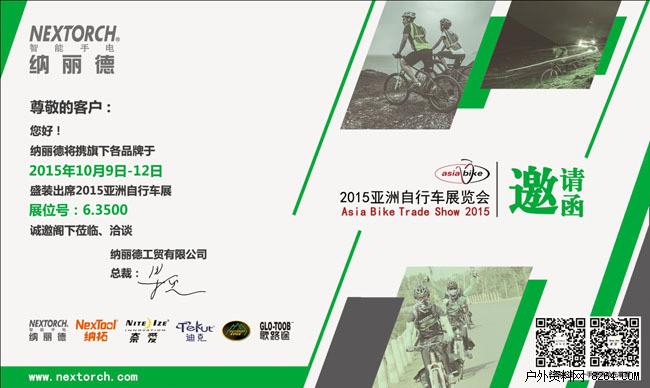 近年来,随着人们对环保理念的日益认同,对健康生活方式的主动追求,自行车运动开始迎来属于它的"全民时代"。而夜间骑行更是日渐风靡,为了让夜骑更安全,越来越多的人开始关注骑行照明问题,骑行照明类企业自然成为亚洲自行车展不可或缺的一部分。而作为国际知名手电品牌,纳丽德也是国内为数不多的专业自行车灯设计品牌,于2014年推出了纳丽德首款矩形光斑自行车灯--B10,产品一经上市就得到骑友们的一致好评,并荣获2014中国户外产业年度评选"优秀国产装备"奖。为进一步深耕骑行市场,同时也是为了让更多的骑友能够体验到纳丽德专业的骑行装备,纳丽德首度与亚洲自行车展牵手合作,即将盛装亮相今年的展会。