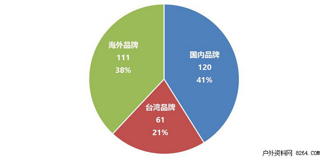 而在整车品牌中,国内大陆品牌120个,占比41%,略高于海外品牌;海外品牌111个,占比38%,台湾品牌61个。