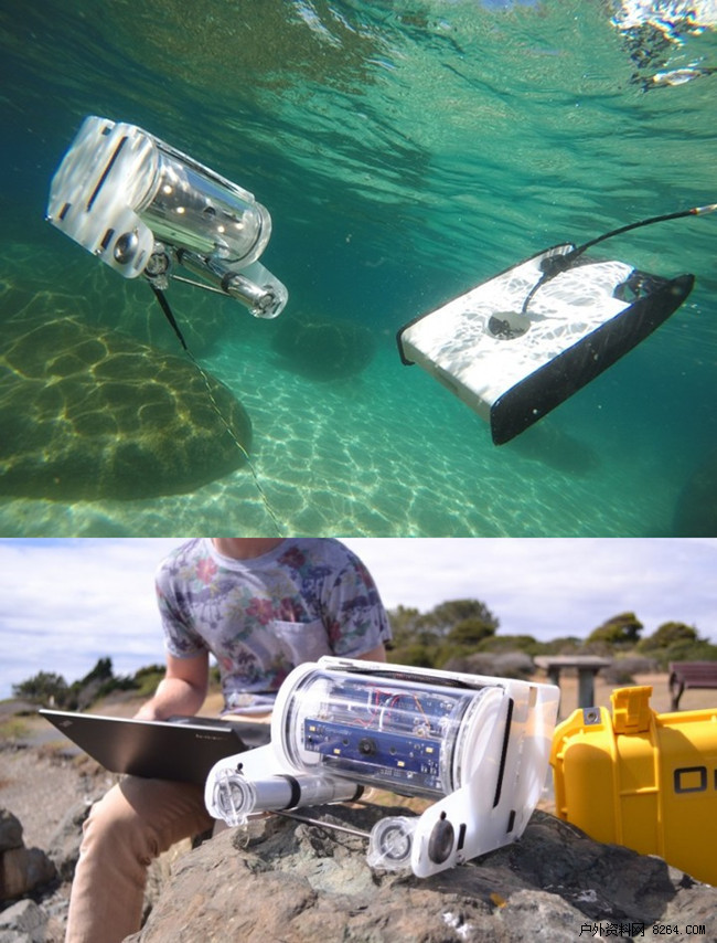 当它在水下移动时,通过前置的高清移动摄像头来拍照,头顶LED照明灯能够确保照片的清晰度,Trident 尾部的绳子和水面上的 WiFi 模块浮标相连接,这些影像和探测数据就能以100mb/s的实时传送上来了。
