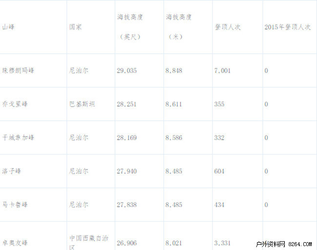 距离部分海拔八千米级别山峰上一次没有任何成功登顶距离已经有十数年时间。2015年,截止到现在,14座八千米级别山峰中的九座没有人到达顶端。或许在通常的冬季尝试过程中,我们能够看到数次登顶,但是如果依照历史数据判断,这种可能性极低。