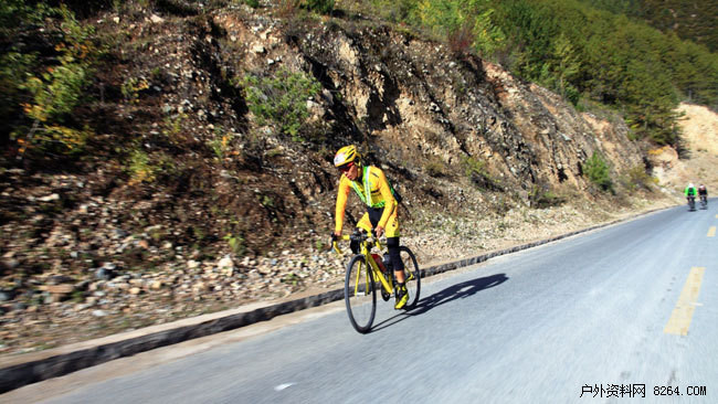 再次出发,觉巴山的下坡杨龙不敢加速,只能眼睁睁看着别人超过自己。到了东达山爬坡,气温升高,才缓过来。但接着的这个路段也是相当折磨人心,远远可以看到山头,但实际上还要走2、30公里。而且几乎全是坡。
