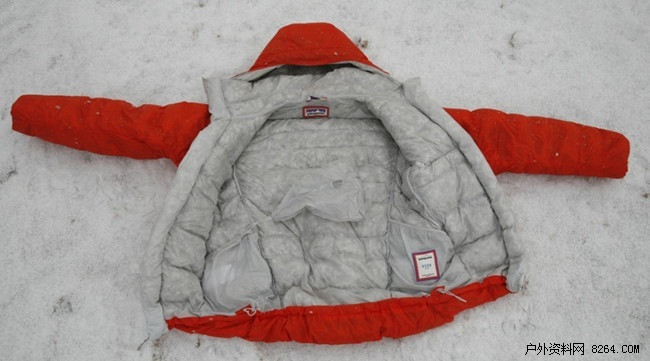 内部情况一览无余,Patagonia Encapsil Down Belay Parka使用的是立衬设计,只有在高寒环境下的羽绒服才会使用这种睡袋一样的结构设计,目的只有一个:增加保暖的效能。 缺点是重量会增加,这款衣服的重量是18OZ,大概510克,相比较而言不算重。