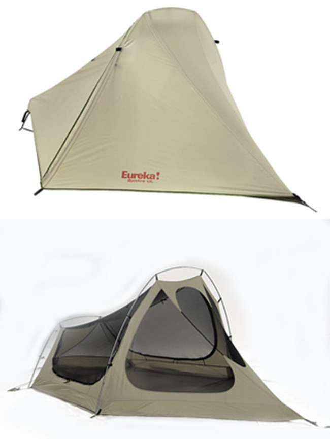 Spitfire是Eureka 小型轻量帐篷的杰作之一,图上方为搭上外帐,下方为纯内帐。