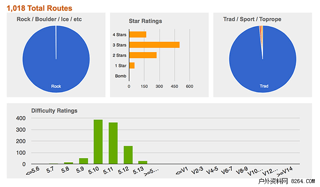 来自北美攀岩资料库MountainProject统计数据,菜胖胖截图整理
