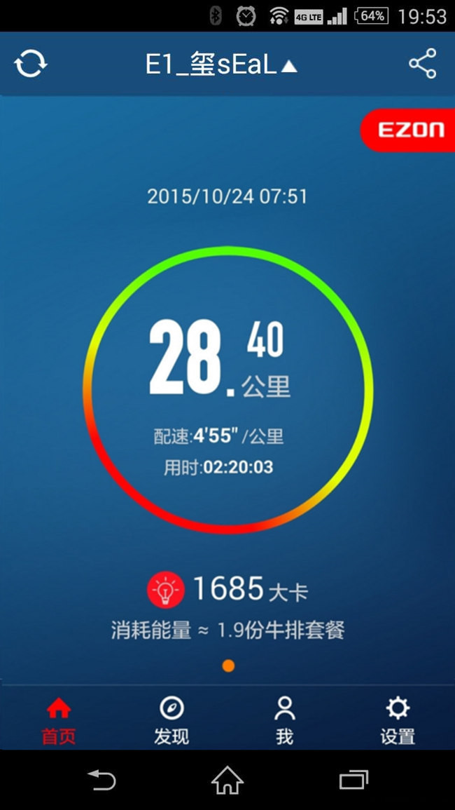 手表与APP的衔接配合:E1的系统体验是一个整体APP和手表缺一不可,所以我觉得还是要总体说一下。二者的配合使用不错,首先硬件方面蓝牙传输很稳定将近一个月的使用过程当中一次断连都没出现过。自动记圈功能很赞,也就是说明书的自动签到。每隔 1km 手表会震动3下提醒,震感清晰而又节奏适合有训练计划的老鸟。
